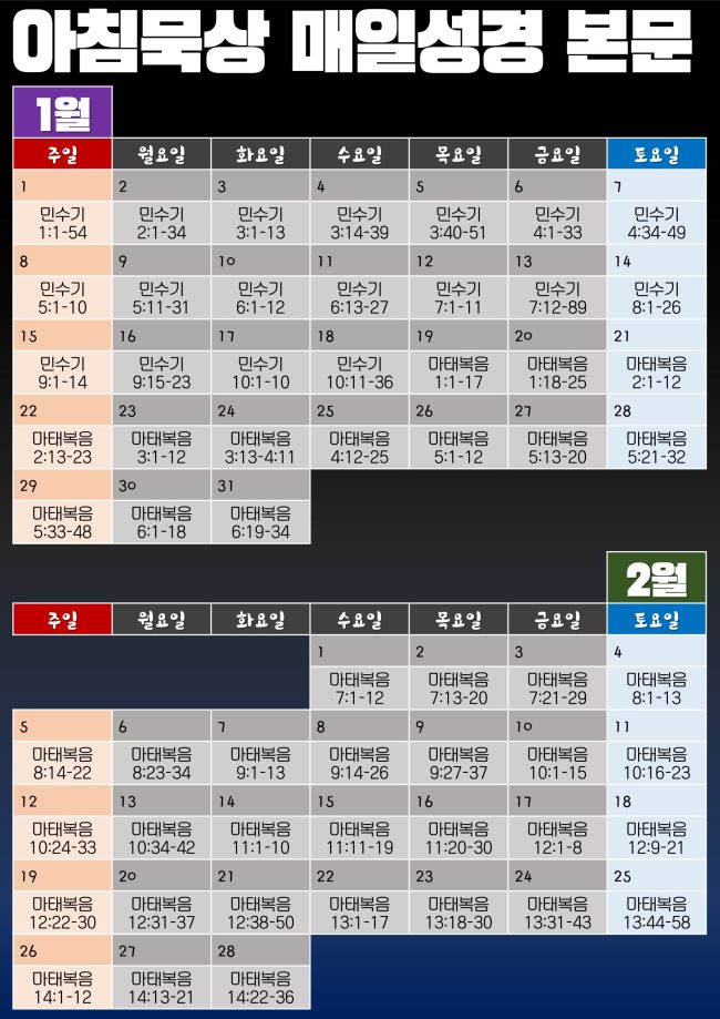 2023.01.01 매일성경 본문 1월 2월