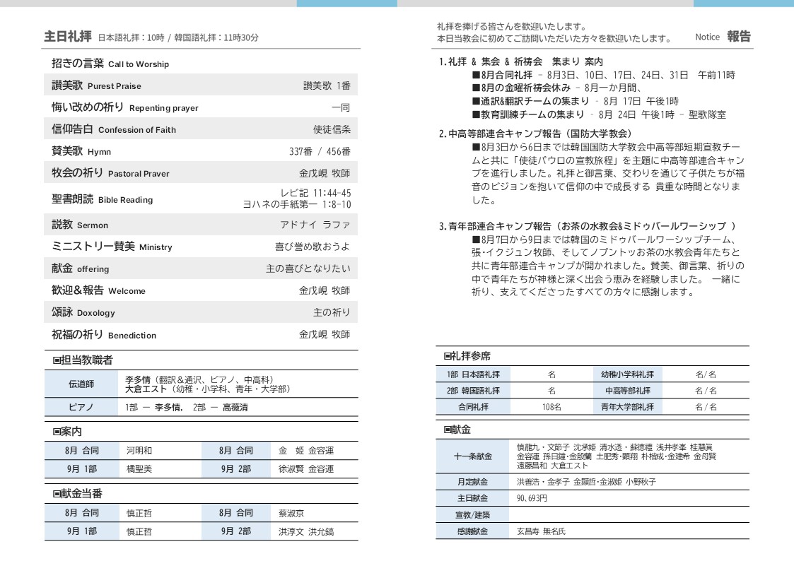 2025.08.10 주보(週報) 합동예배(合同礼拝)