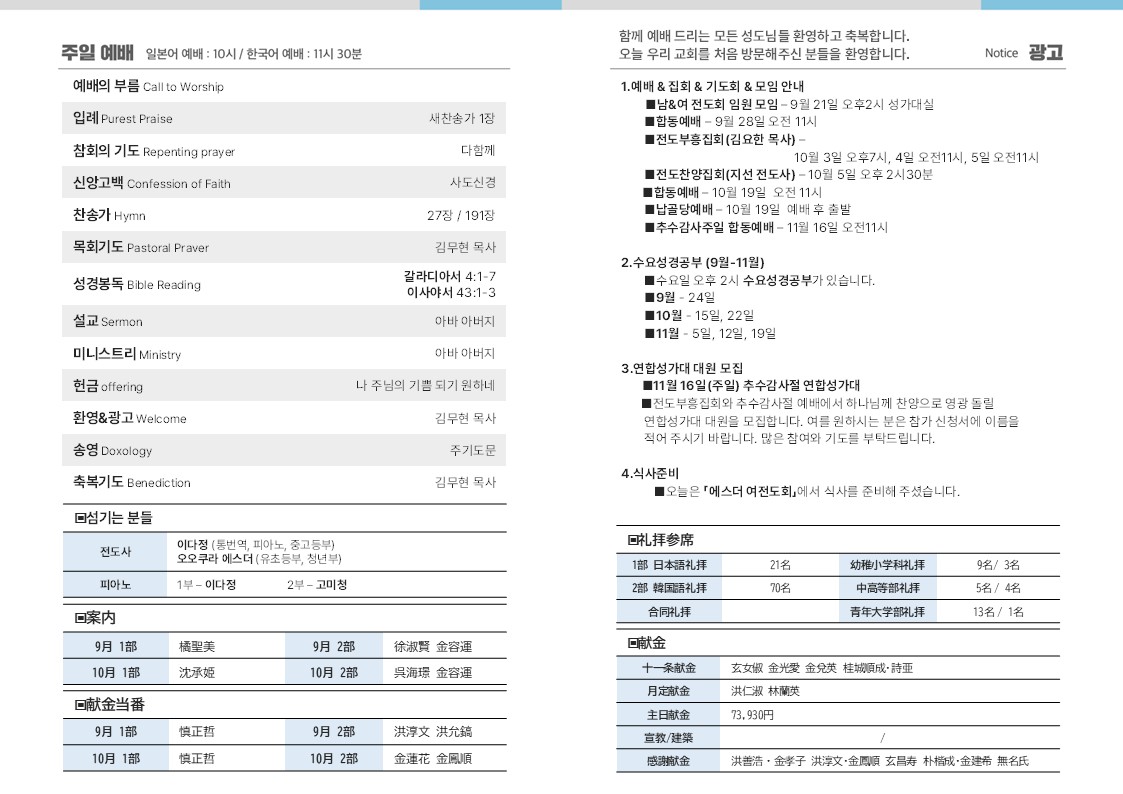 2025.09.28 주보(週報) 합동예배(合同礼拝)