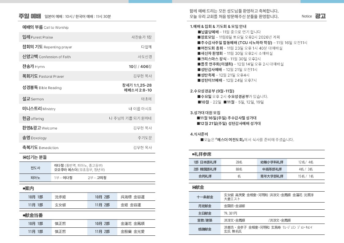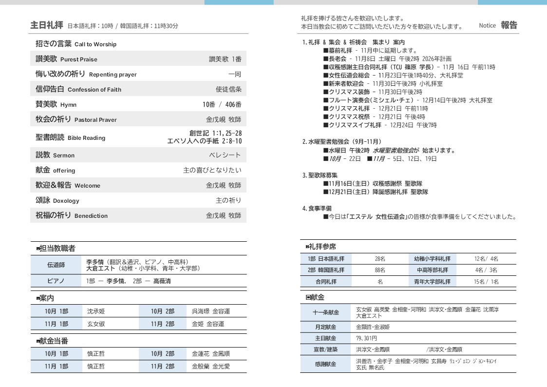 2025.10.19 주보(週報) 합동예배(合同礼拝)