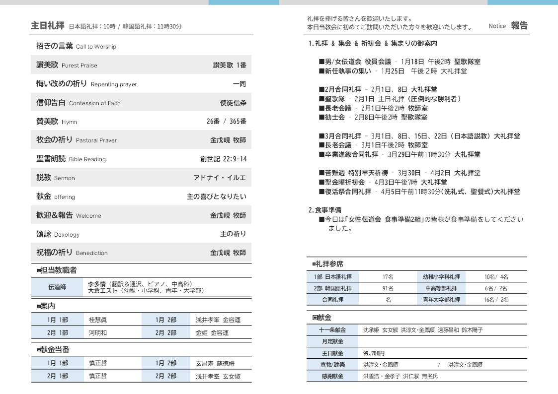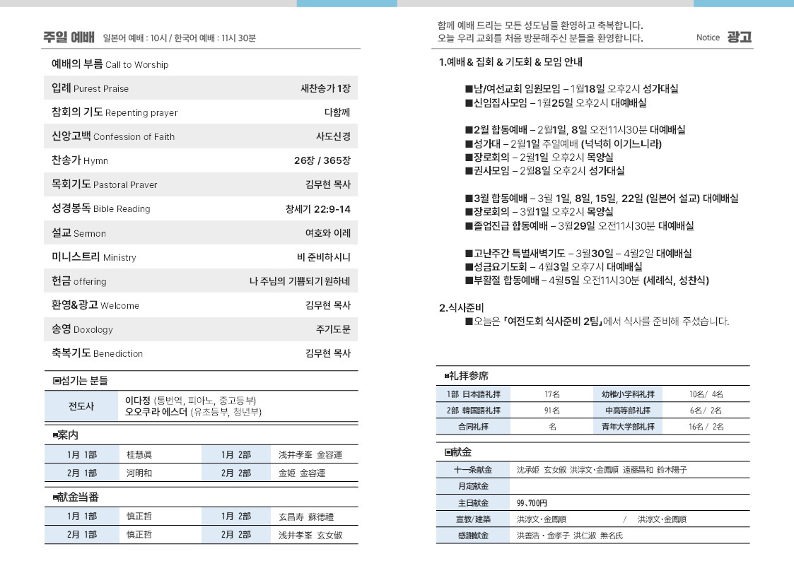 2026.01.04 주보(週報) 신년예배(新年礼拝)