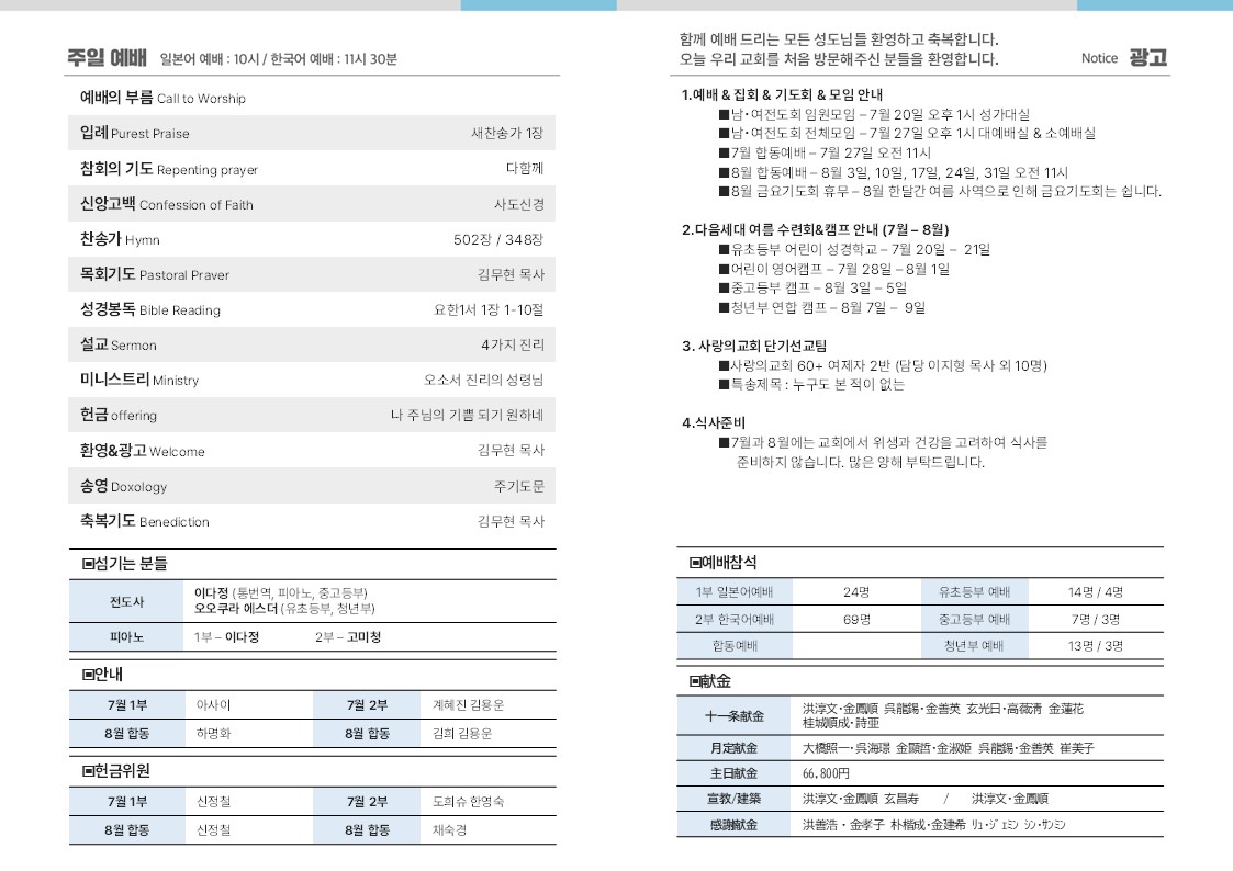 2025.07.27 주보(週報) 합동예배(合同礼拝)