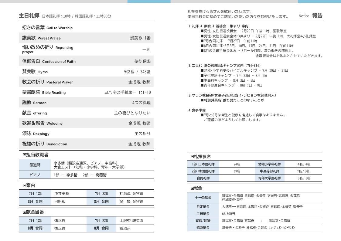 2025.08.10 주보(週報) 합동예배(合同礼拝)